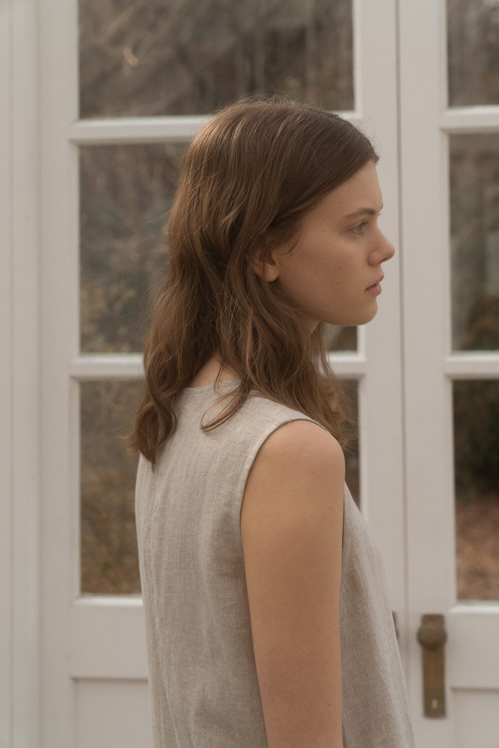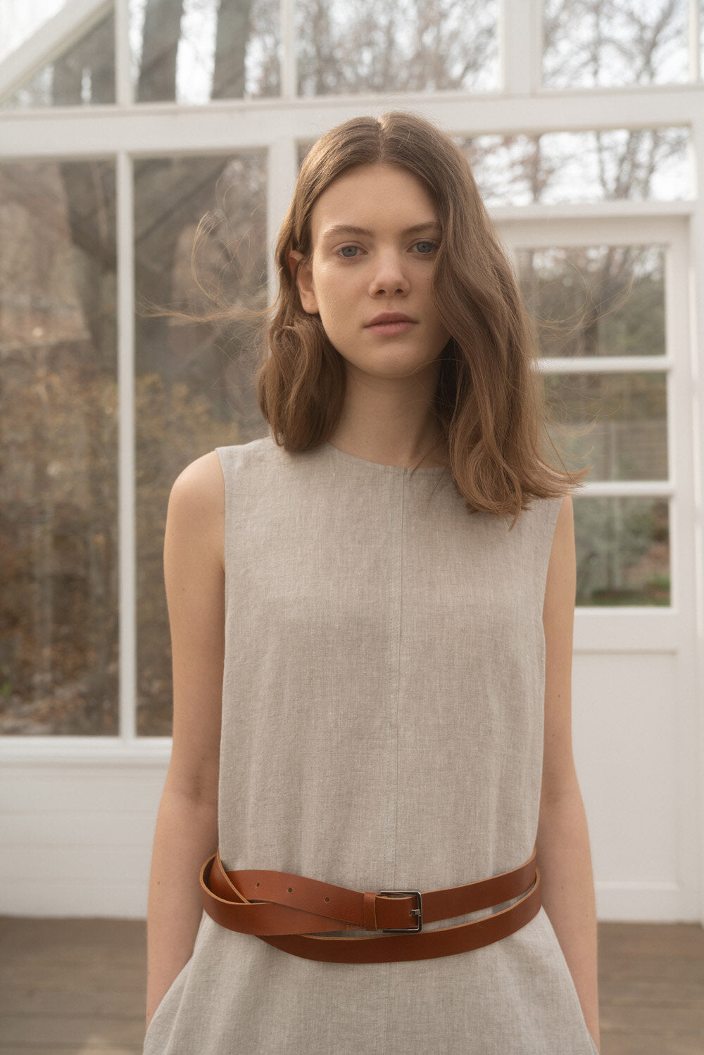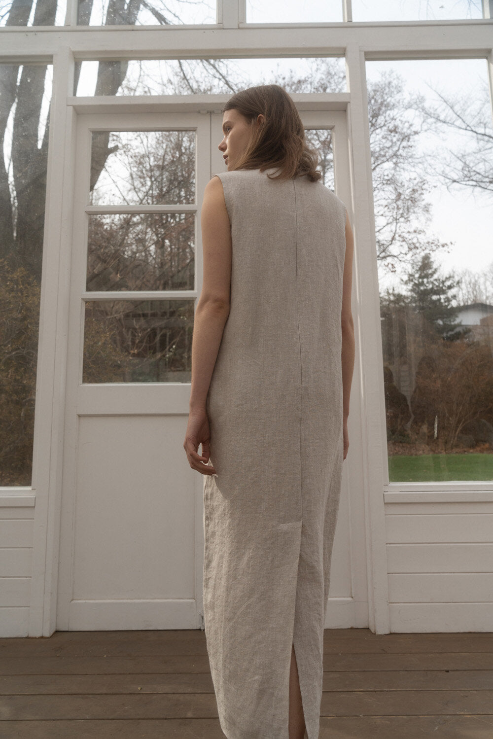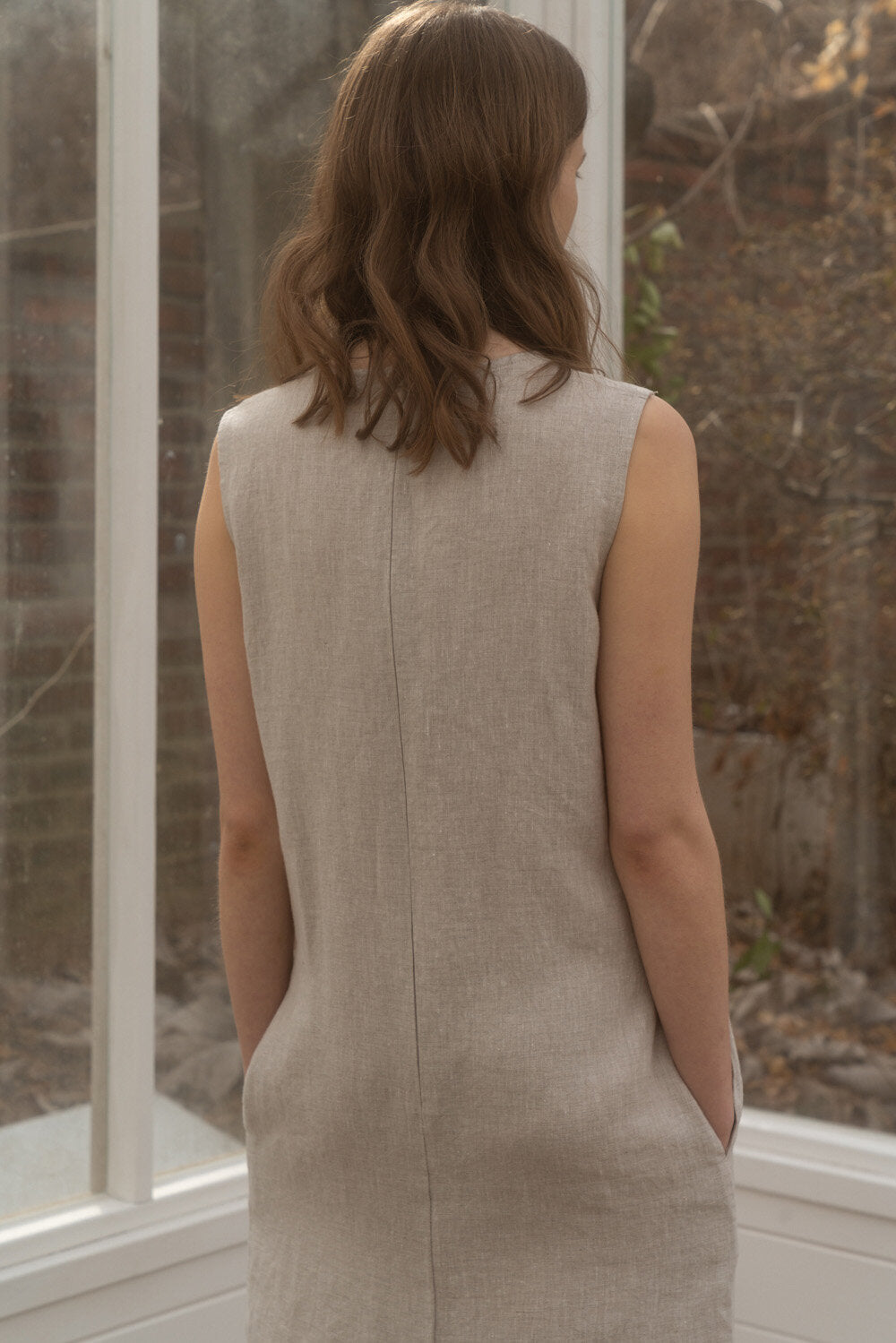 Embrace effortless elegance with this sleeveless linen midi dress from Laura Ren, crafted from premium breathable linen fabric. Designed for both comfort and sophistication, this dress features a clean minimalist silhouette with a subtle back slit for ease of movement. The natural texture of the linen fabric enhances its refined appeal, while the sleeveless design allows for versatile styling across seasons. Whether paired with sandals for a daytime outing or heels for an elevated look, this dress is a timeless addition to your wardrobe. Ideal for modern women who appreciate high-quality materials and classic tailoring, this Laura Ren dress delivers understated luxury in every detail.