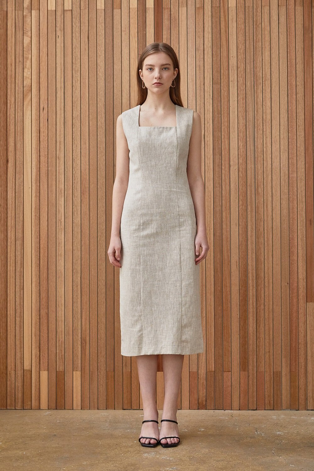 The sleeveless linen midi dress from Laura Ren blends timeless design with breathable comfort. Crafted from high-quality natural linen fabric, this dress features a structured square neckline and a tailored silhouette that flatters the body without compromising on ease. Its minimalist form is perfect for summer events, garden parties, or casual elegance, offering style and sophistication in one. With its midi length and subtle texture, this dress embodies the effortless charm and quiet confidence of the Laura Ren collection. Dress it up with heels or keep it casual with flats — it's a versatile essential for the refined wardrobe.