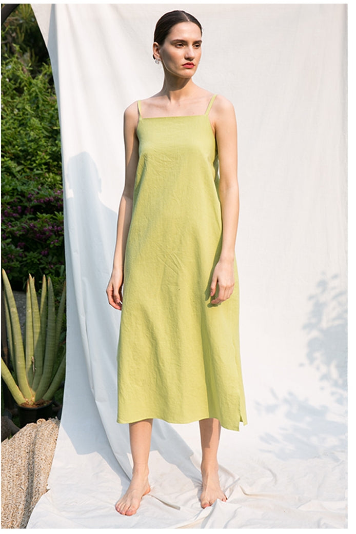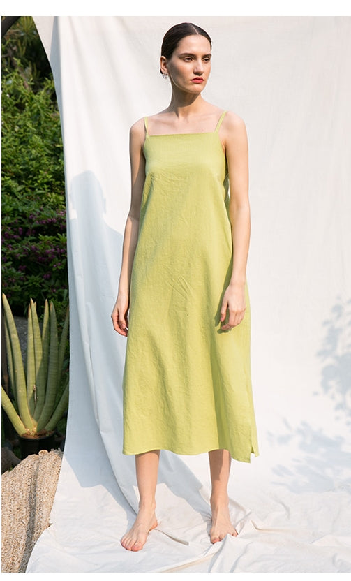 Discover effortless sophistication with this sleeveless midi dress crafted from breathable, high-quality linen by Laura Ren. Featuring a clean square neckline and a relaxed, flowy silhouette, this dress is designed for comfort and ease. The adjustable back tie detail adds a delicate, feminine touch while allowing for a custom fit. Ideal for warm weather, the linen fabric ensures breathability and timeless elegance. Whether you're heading to a summer brunch or an afternoon getaway, this piece offers the perfect blend of refined design and natural texture. Pair it with sandals or dress it up with heels for versatile styling options.