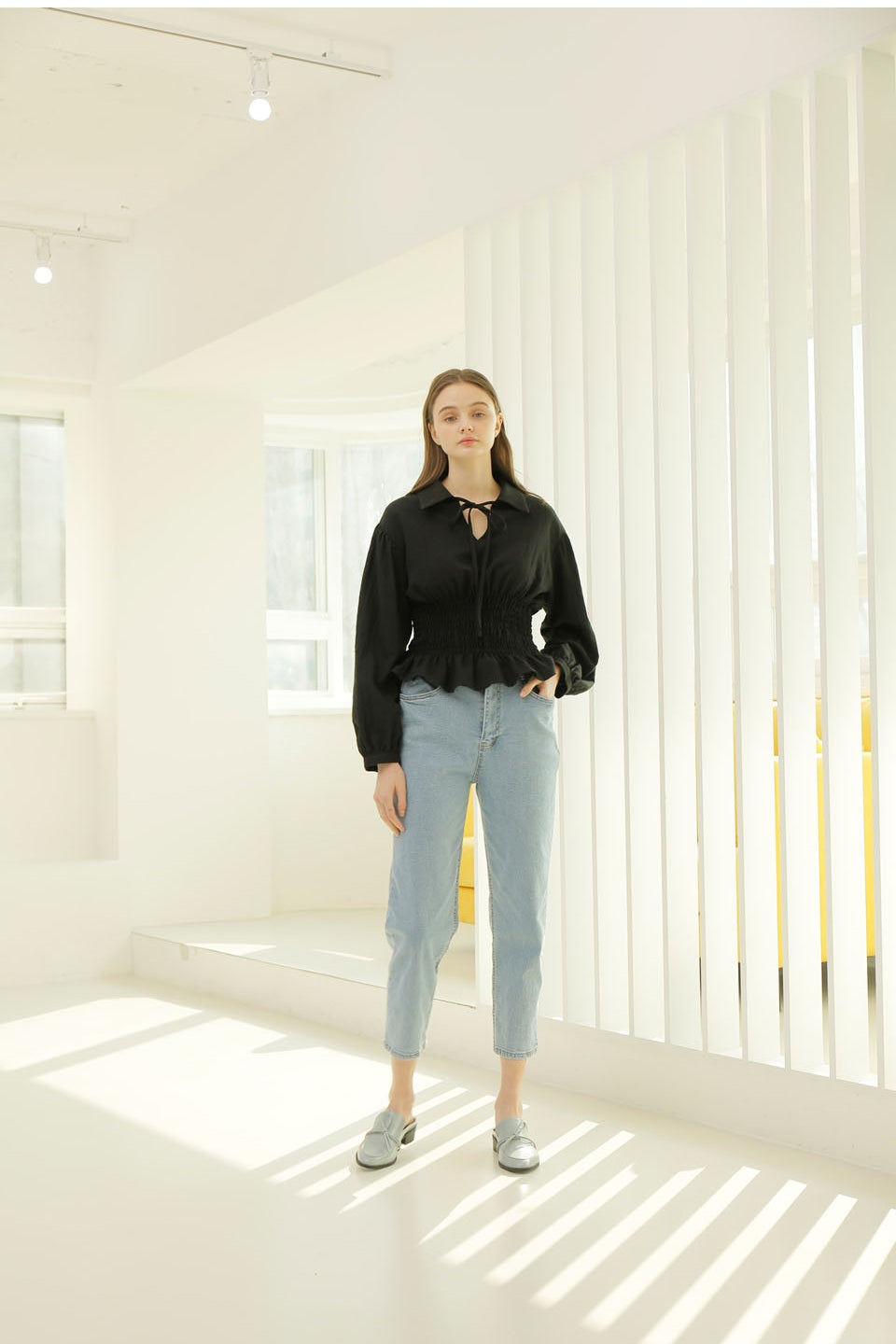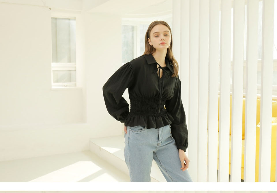 The Laura Ren linen blouse blends delicate tailoring with breathable refinement for the warm season. Featuring a statement tie-front neckline, full-length puff sleeves, and a flattering smocked waist, this top is a standout piece for effortless everyday styling. The structured collar and soft flared hem add balance and charm to the silhouette. Crafted from airy linen, it pairs seamlessly with denim or linen skirts for a relaxed yet elevated look. Discover timeless femininity with this versatile Laura Ren blouse.