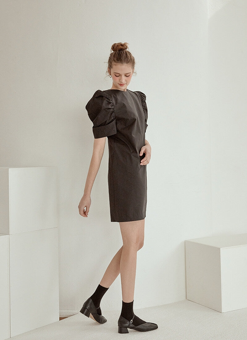This cotton poplin mini dress from Laura Ren is a modern take on timeless femininity. Expertly crafted from breathable and structured cotton poplin, the dress features bold puff sleeves that add drama and definition. Its minimalist round neckline and clean A-line silhouette create an effortlessly elegant shape that flatters all body types. Perfect for day-to-night transitions, this dress pairs well with heels or flats for a versatile, fashion-forward look. Laura Ren delivers sophistication in every detail, making this piece a must-have for refined wardrobes.