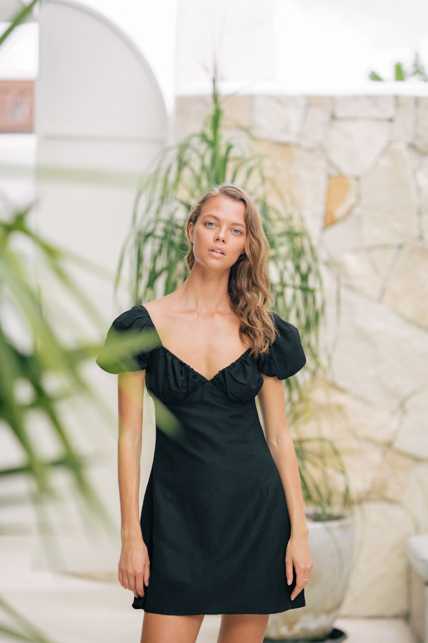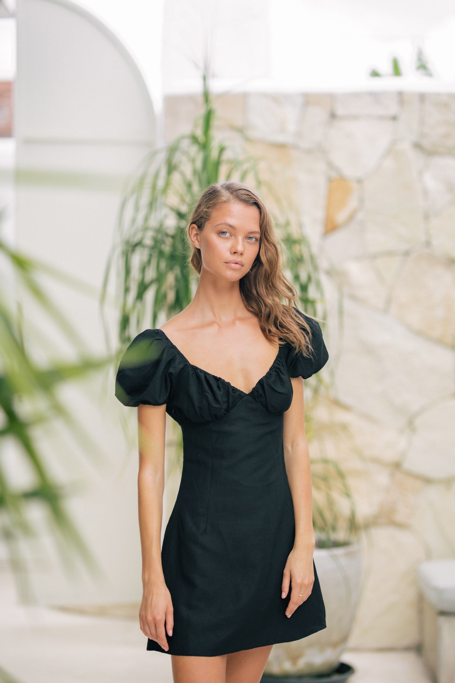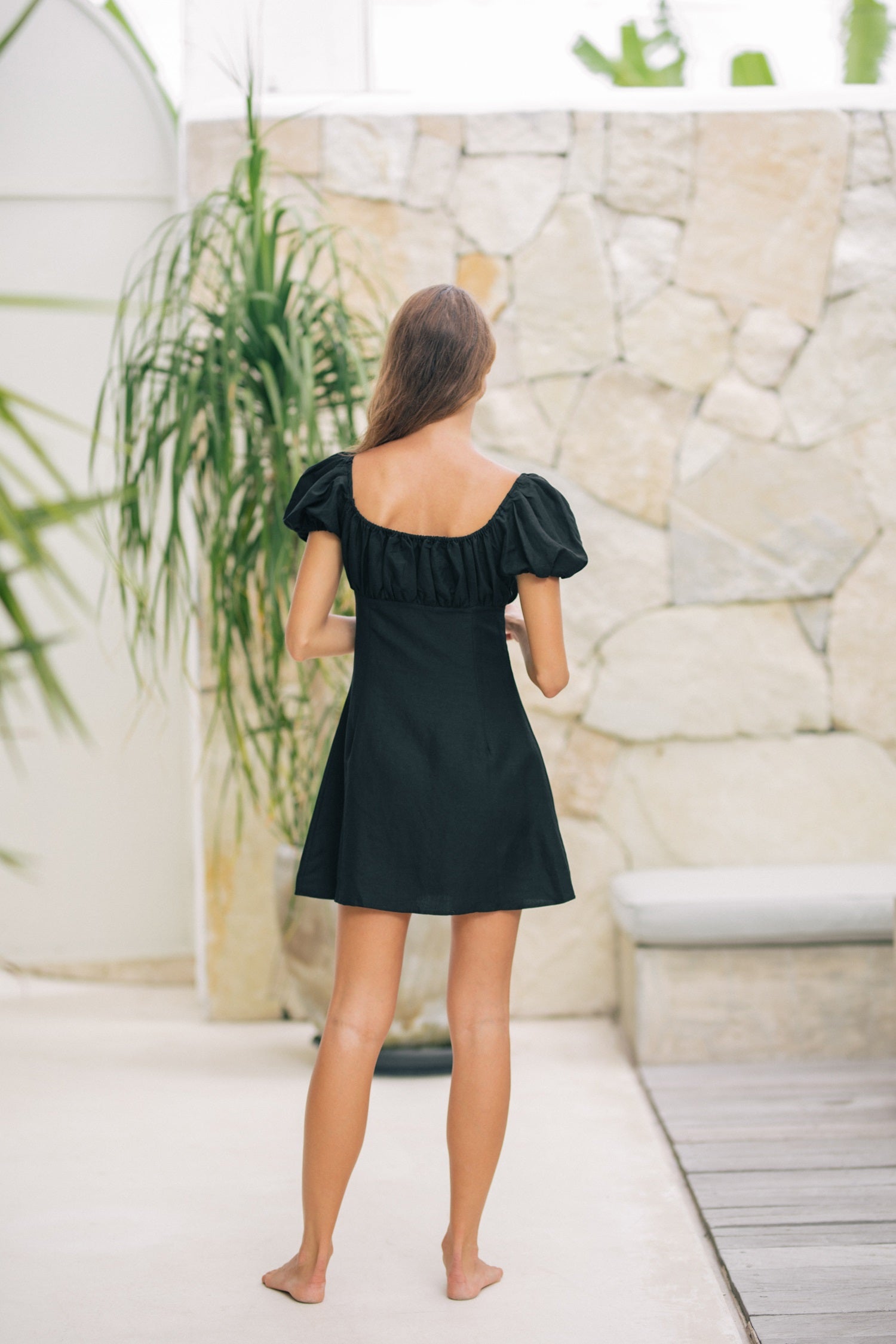 Laura Ren unveils a romantic linen mini dress that blends vintage charm with modern femininity. Crafted from premium breathable linen, this dress features a flattering sweetheart neckline, dramatic puff sleeves, and a cinched waist that accentuates your silhouette. The short hemline adds a flirty touch, making it ideal for summer soirées, weekend getaways, or elevated everyday wear.