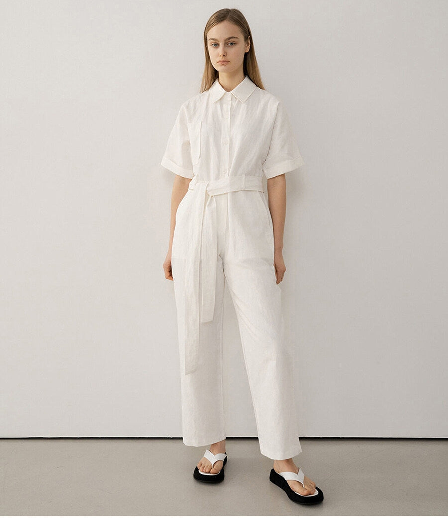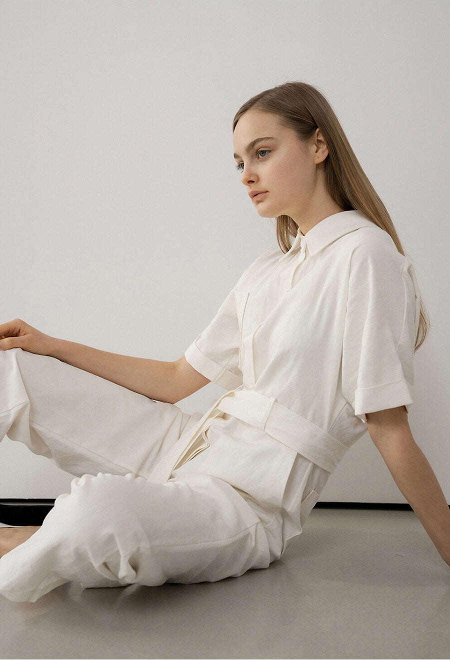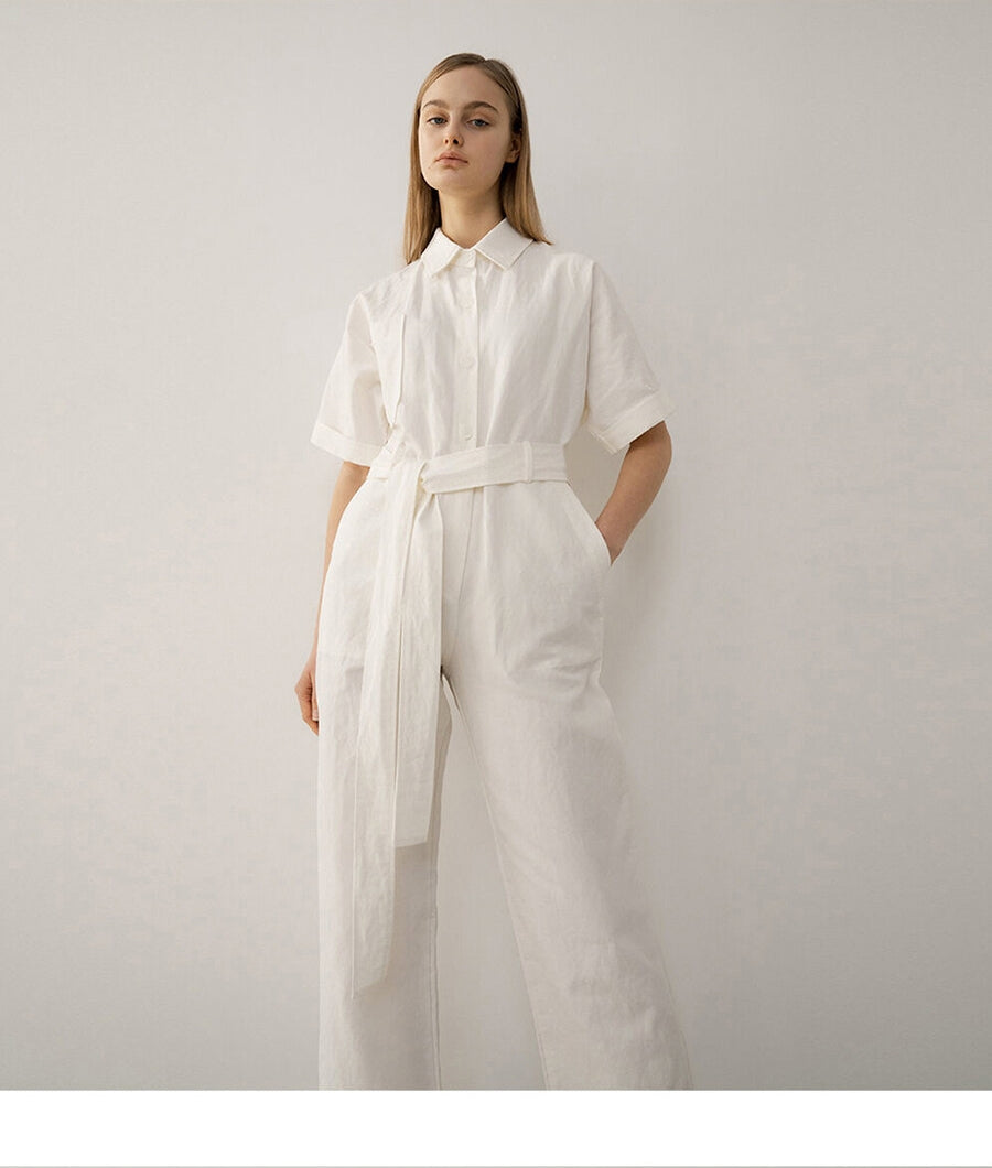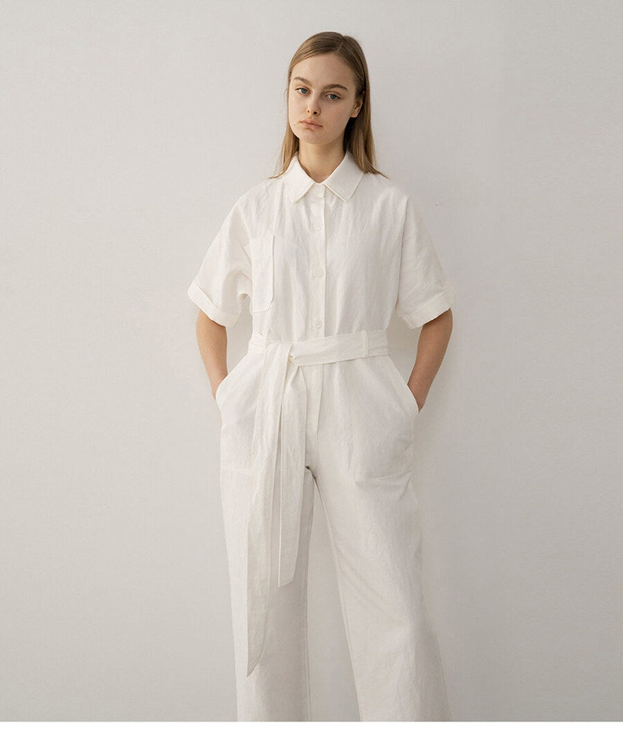 Elevate your everyday wardrobe with this tailored linen jumpsuit from Laura Ren. Crafted from breathable natural linen, this refined one-piece features a clean button-up front, short sleeves, and a soft collar for a polished silhouette. The detachable waist belt allows for a customizable fit, while the straight-leg cut elongates the frame. With practical patch pockets and minimal seams, this jumpsuit blends utility and elegance for the modern woman. Ideal for resort escapes or city strolls, Laura Ren’s linen jumpsuit delivers airy comfort and timeless versatility. Style it up with sandals or flats for effortless summer sophistication.