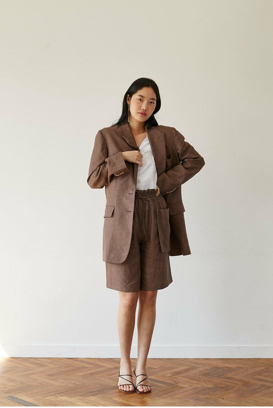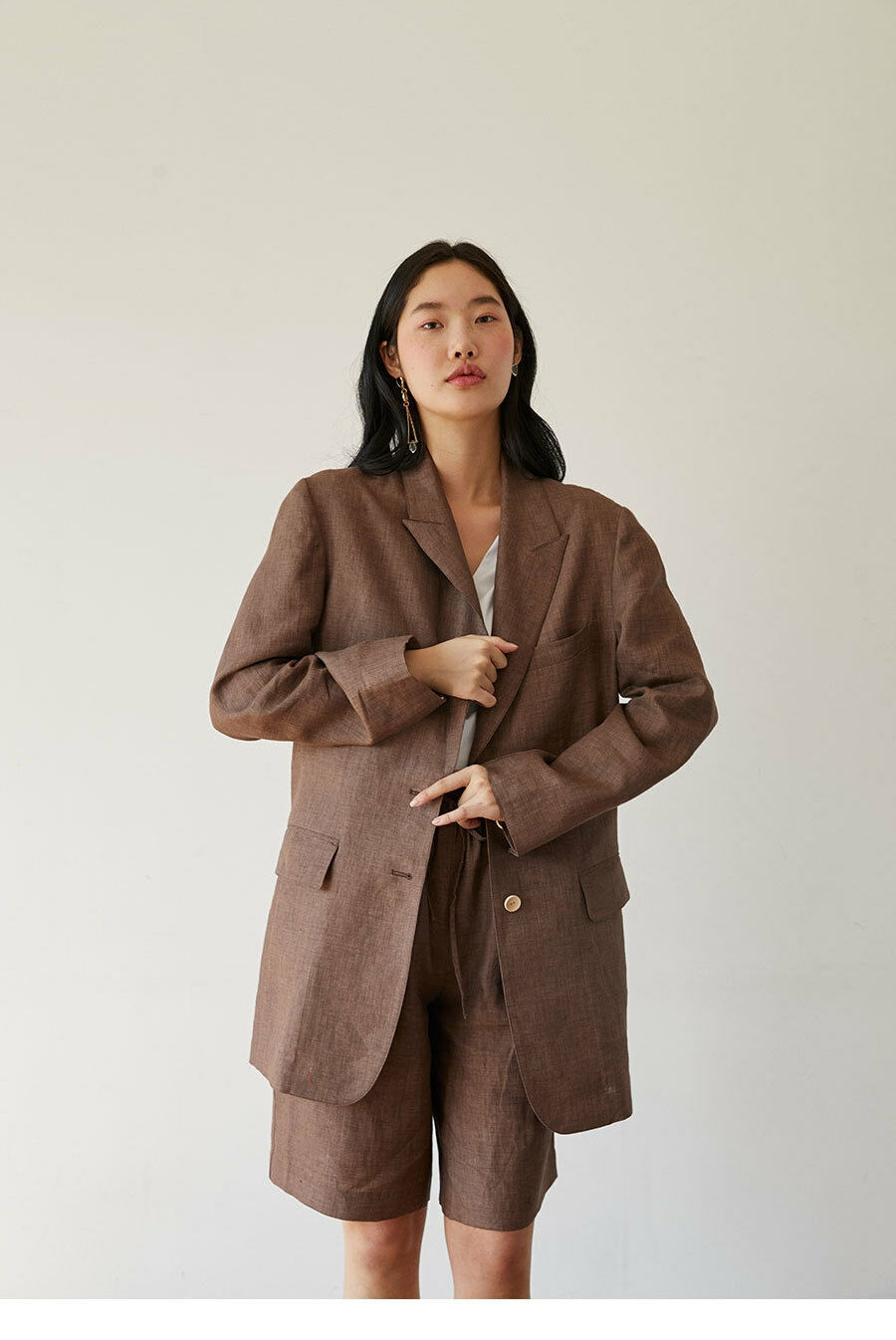 The Laura Ren tailored linen blazer is a refined essential crafted for lightweight structure and effortless polish. Designed with classic notched lapels and a front button closure, this blazer elevates warm-weather looks with breathable comfort and crisp tailoring. Functional flap pockets and buttoned cuffs enhance its utilitarian elegance, while the longer silhouette lends modern versatility. Style it over linen shorts, relaxed trousers, or belted dresses for a chic, structured finish. Laura Ren's linen blazer transitions seamlessly from day to night, balancing casual cool with timeless sophistication.