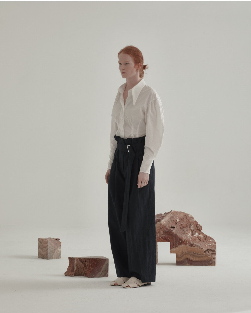Laura Ren presents a refined take on wardrobe essentials with this structured linen shirt, crafted from breathable natural fibers for effortless sophistication. Designed with a sharp oversized collar and voluminous sleeves that gather gently at the cuff, this shirt balances contemporary tailoring with feminine flair. Its clean silhouette and elongated lines lend themselves perfectly to high-waisted trousers or flowing skirts, making it a staple for both professional and weekend wardrobes. Pair it with Laura Ren's signature linen trousers for a timeless, elevated ensemble.