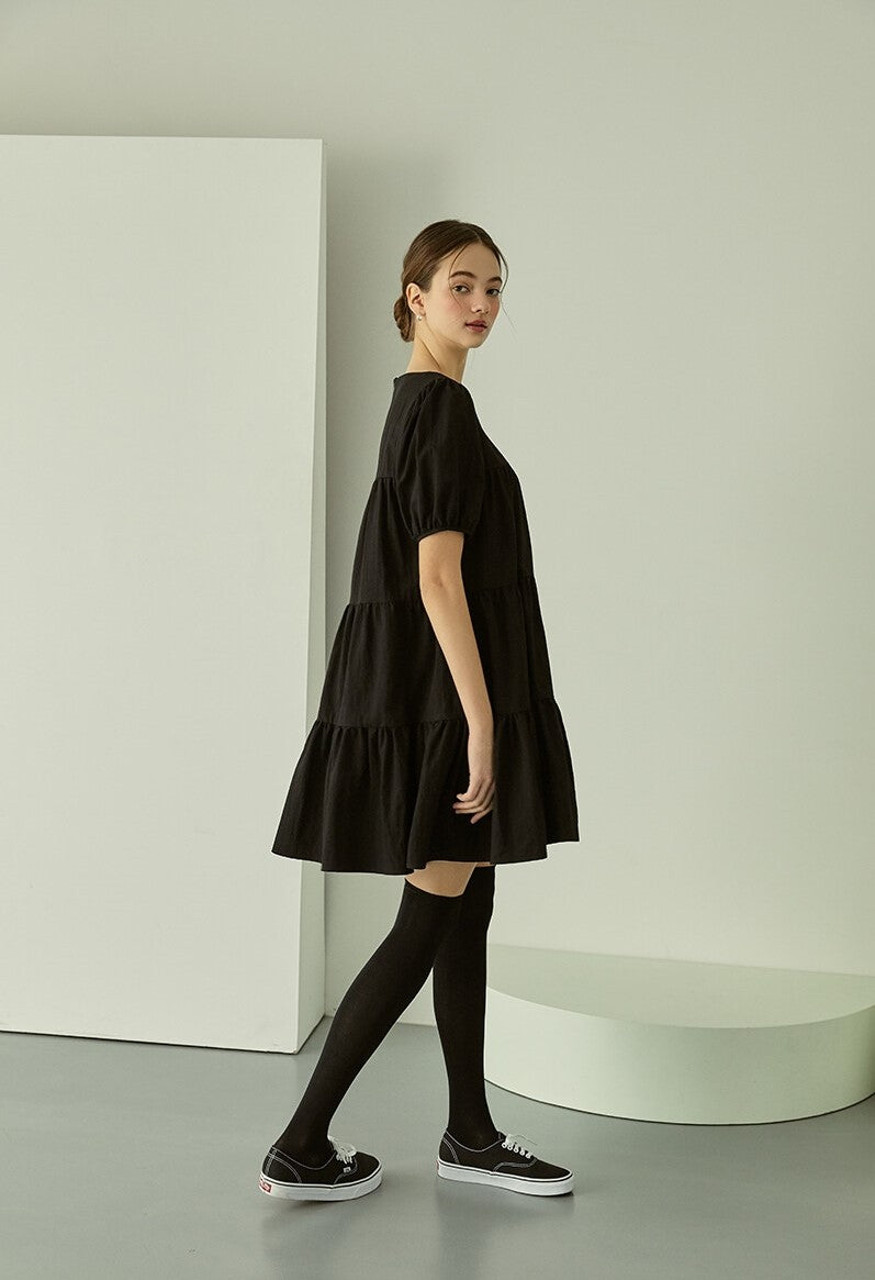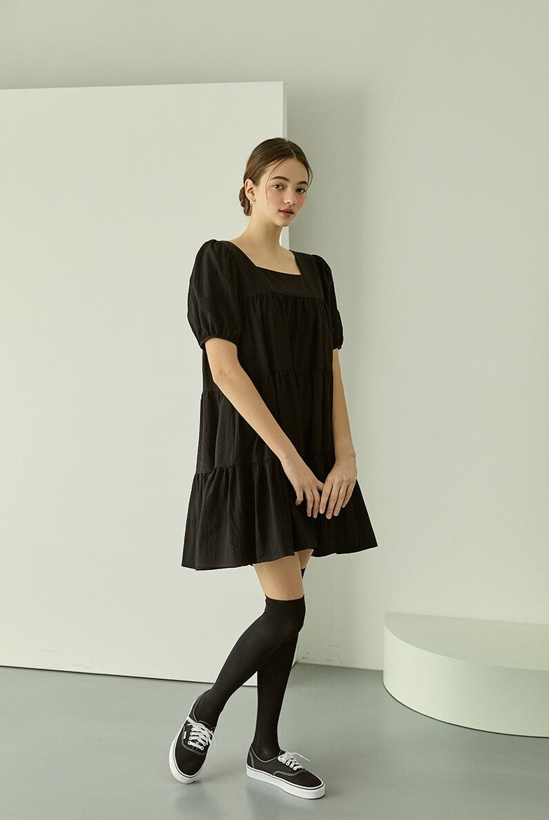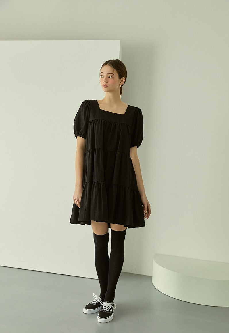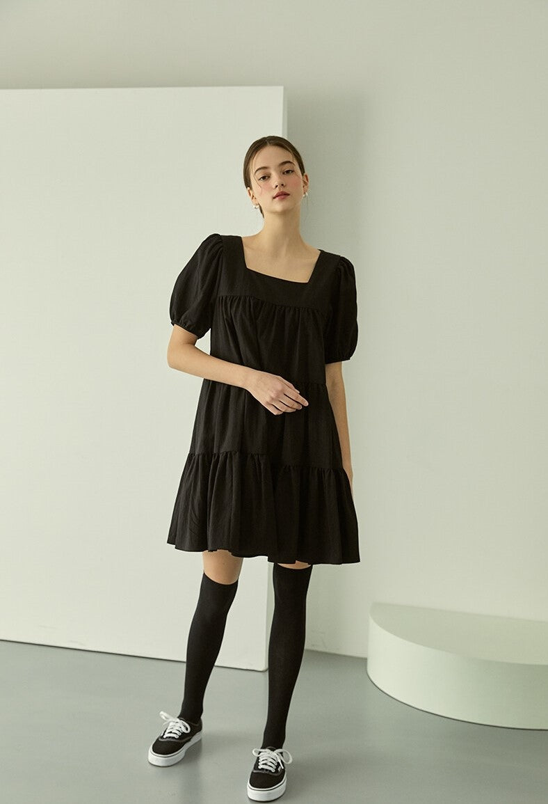 Discover understated elegance with this tiered linen mini dress by Laura Ren. Crafted from breathable, high-quality linen, this dress features a flattering square neckline and voluminous puff sleeves that add a romantic touch. The tiered silhouette offers soft structure and effortless movement, making it a versatile choice for both casual daywear and elevated evenings. Its minimalist design is balanced with subtle gathers and refined stitching, reflecting contemporary femininity and timeless charm. Whether styled with boots or strappy heels, this linen dress is a must-have addition to any elevated wardrobe.