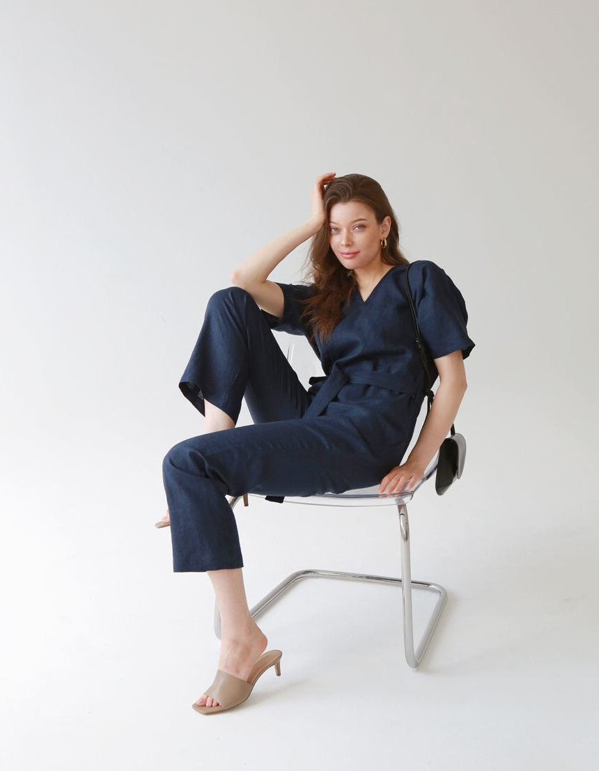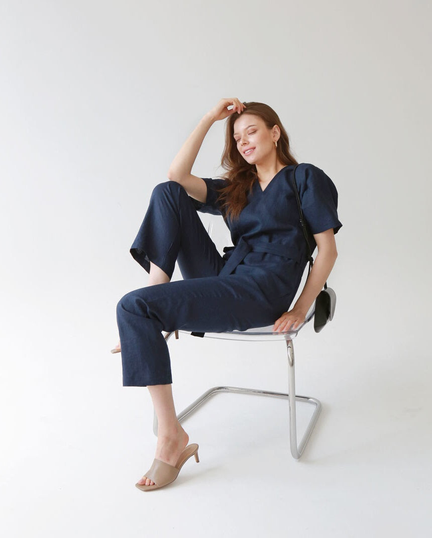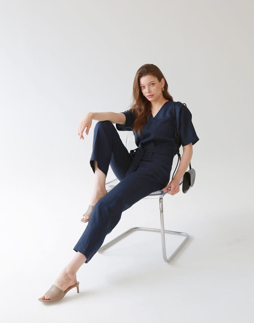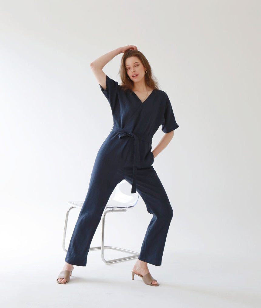 Laura Ren introduces a timeless linen jumpsuit designed to blend minimalist elegance with all-day comfort. Crafted from lightweight linen, this tailored piece features a flattering V-neckline, relaxed short sleeves, and a self-tie belt to accentuate the waist. The straight-leg cut adds movement and elongates the silhouette, making it ideal for both casual and dressy occasions. A go-to one-piece essential for summer sophistication.
