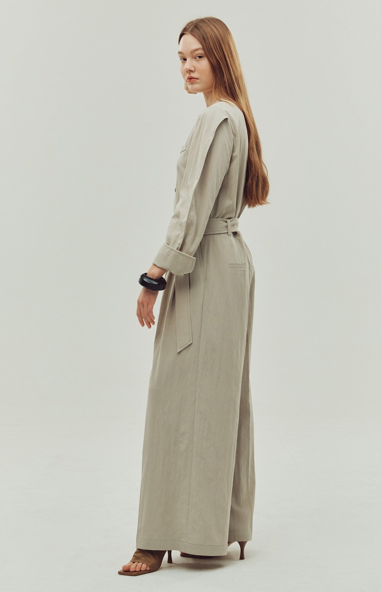 Elevate your wardrobe with this effortlessly refined linen jumpsuit by Laura Ren. Crafted from breathable, high-quality linen, this one-piece features a flattering wide-leg silhouette, clean button-front closure, and a tailored belt to cinch the waist. Its structured lapel collar and full-length sleeves add sophistication, while the soft fabric ensures all-day comfort. Ideal for both casual and semi-formal occasions, this versatile jumpsuit is a timeless addition to any fashion-forward woman’s collection. Designed for modern elegance with functional ease, it's your go-to outfit for polished minimalism.