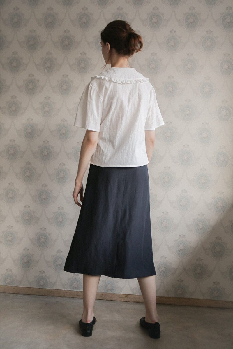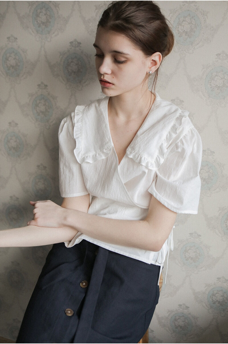 This wrap-style linen blouse from Laura Ren combines effortless elegance with soft feminine detailing. Expertly crafted from breathable, natural linen, it features a delicate ruffle-trimmed collar, a flattering V-neckline, and a comfortable short sleeve cut. The blouse wraps at the side with an adjustable tie closure for a personalized fit and subtle shaping. Its lightly textured fabric offers airy comfort, making it perfect for transitional weather and versatile styling. Whether paired with wide-leg pants or an A-line skirt, this Laura Ren blouse exudes understated sophistication and refined charm.