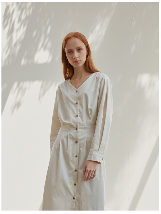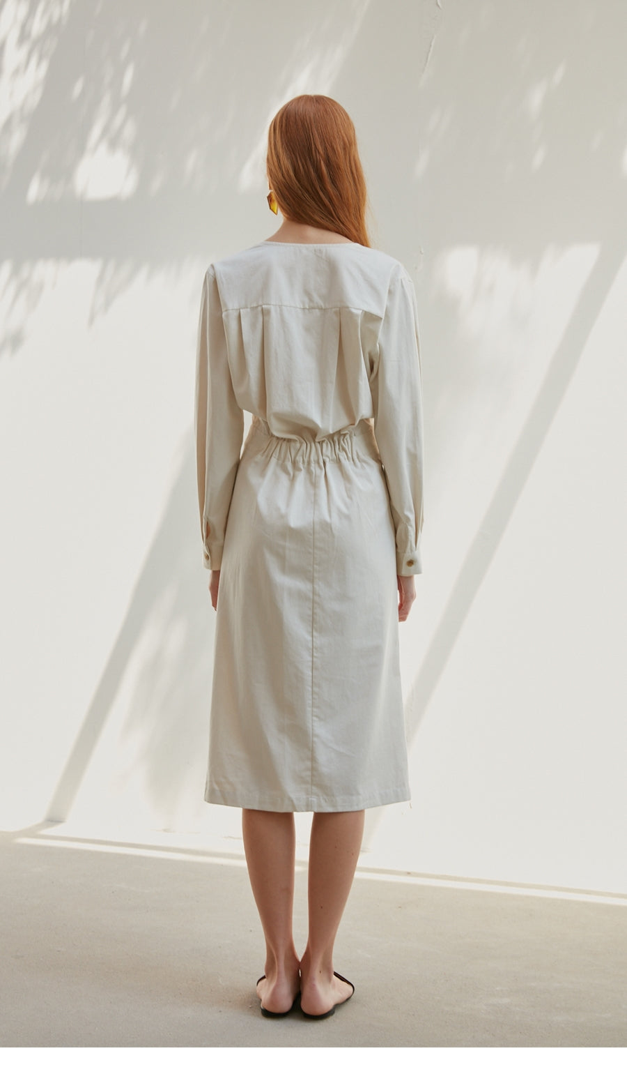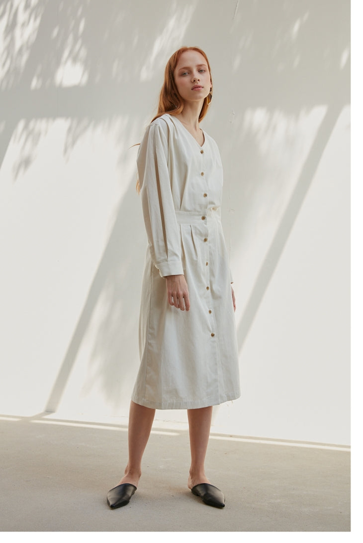 Graceful and effortlessly modern, this linen midi dress from Laura Ren combines relaxed tailoring with clean design. Crafted from breathable linen fabric, it features a flattering V-neckline, full button-down front, and structured long sleeves with cuff detailing. The elasticated back waist ensures a comfortable, defined silhouette, making it ideal for everyday wear or weekend elegance. Its minimalist style transitions seamlessly from work to casual settings, offering timeless appeal and seasonless versatility. Pair it with flats or sandals for understated refinement.