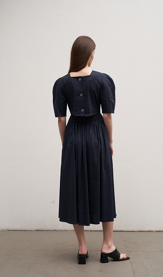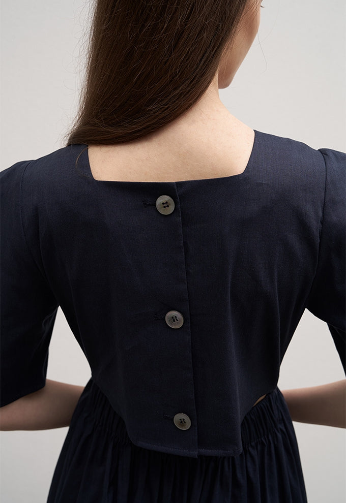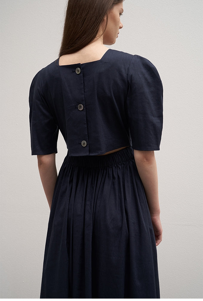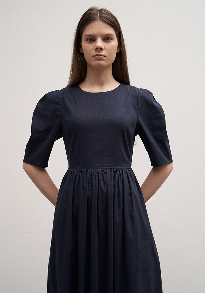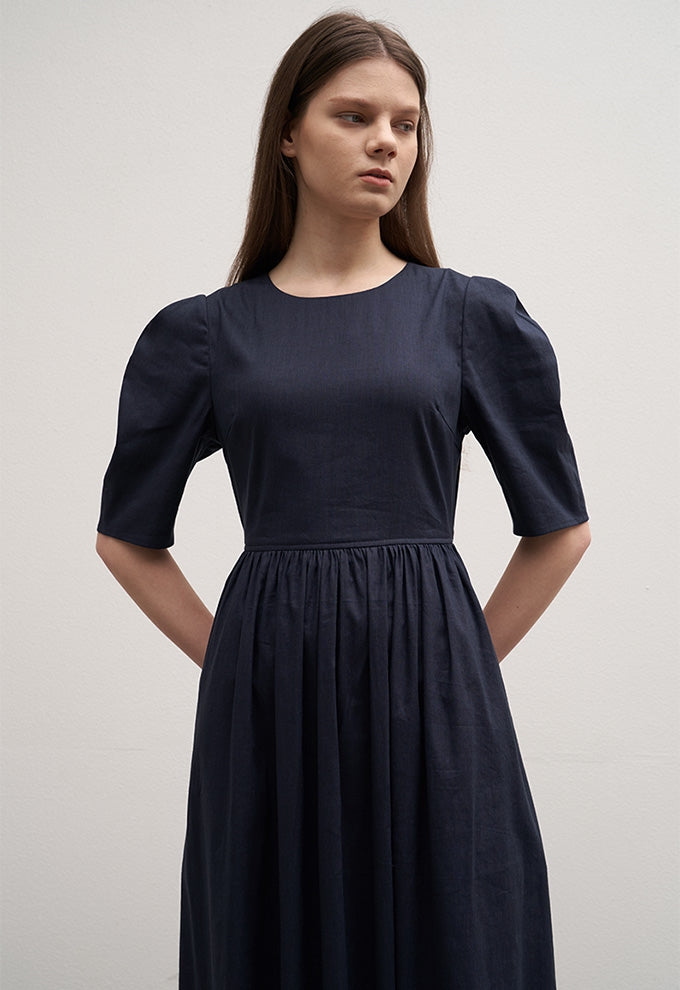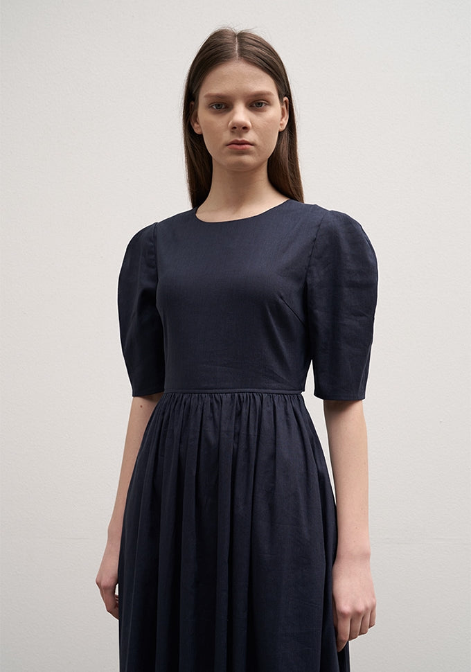 This linen puff sleeve midi dress from Laura Ren is a timeless expression of modern femininity. Made from breathable linen, it features a rounded neckline, voluminous mid-length sleeves, and a gathered A-line skirt that creates soft, flowing movement. The back stands out with an eye-catching button closure and subtle open-back effect above an elastic waist for comfort and fit. Lightweight and elegant, this dress is ideal for warm weather, offering effortless style for everyday wear, garden parties, or vacations. Natural texture, graceful lines, and unique construction make this a must-have wardrobe piece.