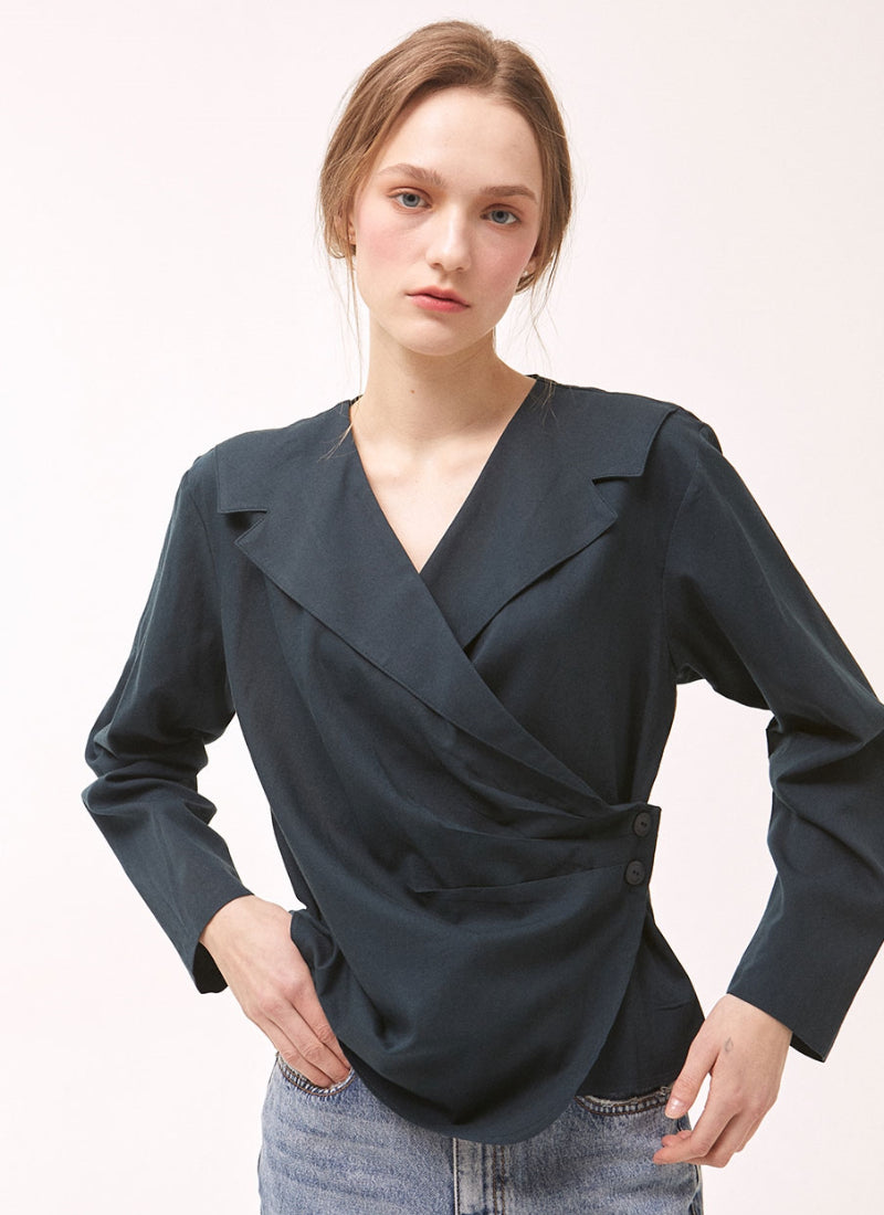 Elevate your wardrobe with this sophisticated linen wrap blouse from Laura Ren, crafted for women who appreciate refined minimalism and premium fabric. Made from breathable, natural linen, this blouse features a structured V-neckline, elegant lapel collar, and a side-wrap silhouette that fastens with dual buttons for a flattering, cinched look. Its long sleeves and tailored fit provide both comfort and polished versatility—perfect for transitioning from desk to dinner. Laura Ren’s linen top is a must-have for creating chic, effortless looks all year round.