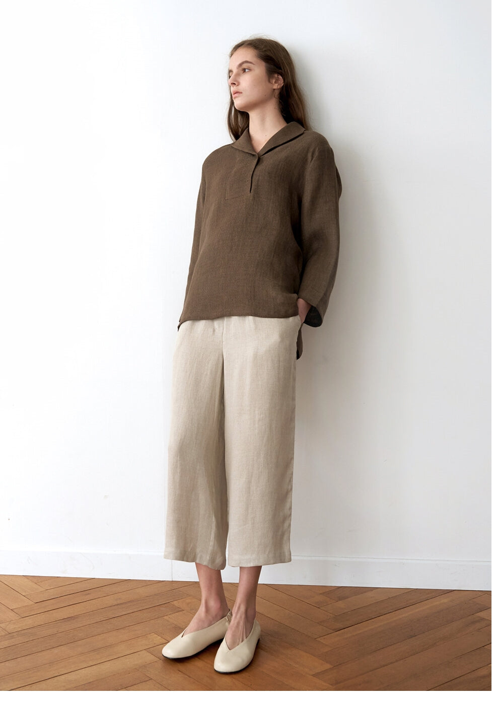 This long sleeve linen blouse from Laura Ren blends heritage-inspired design with modern minimalism. Crafted from breathable, lightweight linen, it features a soft pullover style with a wide V-collar and subtly structured silhouette. The relaxed fit allows for ease of movement, while the natural texture enhances its understated charm. Ideal for layering or wearing solo, it’s a versatile staple that complements both casual and refined ensembles. A timeless addition to any capsule wardrobe, this Laura Ren blouse redefines comfort and elegance with thoughtful tailoring and artisanal fabric.