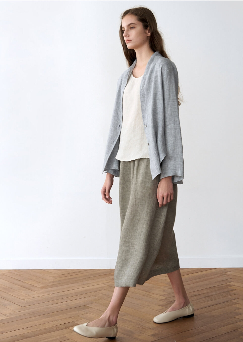 Elevate your wardrobe essentials with this mid-length linen skirt by Laura Ren. Crafted from premium breathable linen, this skirt features a high-waisted, gently flared A-line silhouette that flatters all body types. Its natural texture and fluid drape offer both structure and softness, making it a versatile piece for any refined capsule wardrobe. Whether styled with minimalist tops or relaxed outerwear, this skirt transitions seamlessly from casual to elevated looks. A subtle expression of timeless design, this Laura Ren piece delivers everyday elegance with signature craftsmanship and comfort.